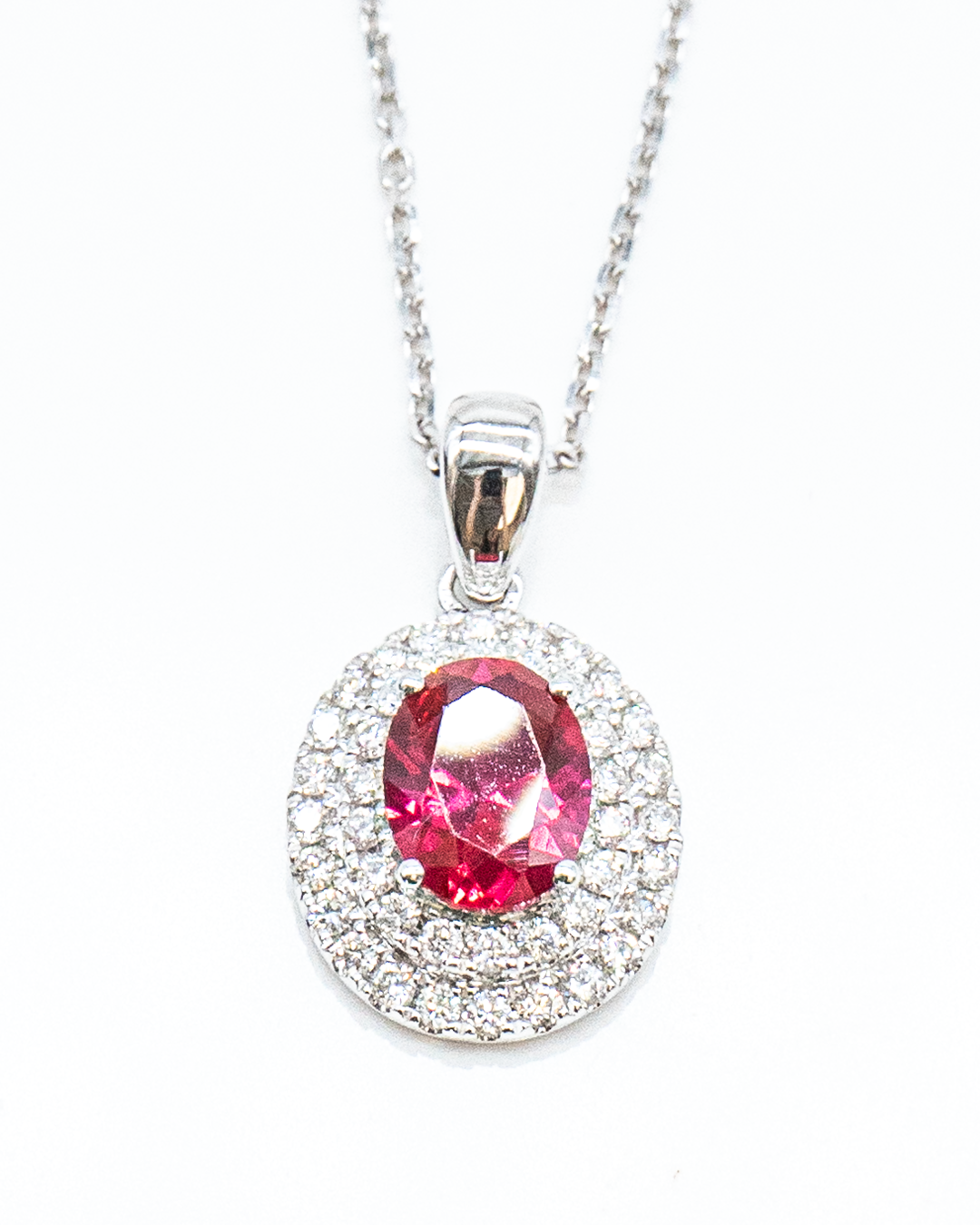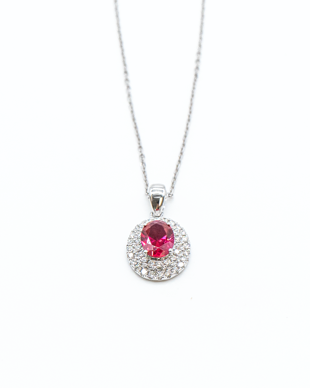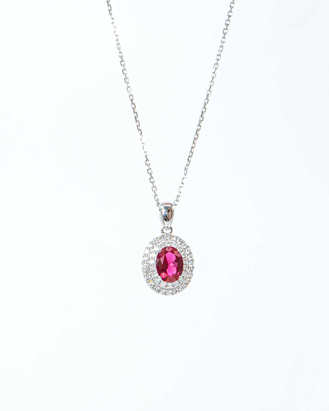 Celebrate elegance and romance with the Heartfelt Halo Necklace, a refined piece that beautifully combines sparkling diamonds with a striking colored gemstone centerpiece. This necklace features 42 round brilliant-cut diamonds totaling 0.39 CTS, surrounding a single colored stone of 1.38 CTS for a radiant halo effect.