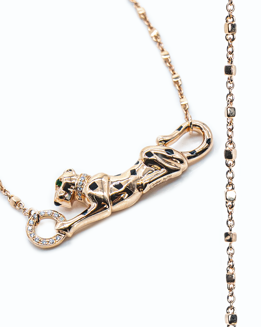 Expertly handcrafted for lasting beauty, the necklace has a net weight of 12.36 GM (gross weight 12.38 GM), making it perfect for both elevated everyday wear and special occasions. The Panthère Necklace embodies timeless luxury, meticulous craftsmanship, and versatile elegance.